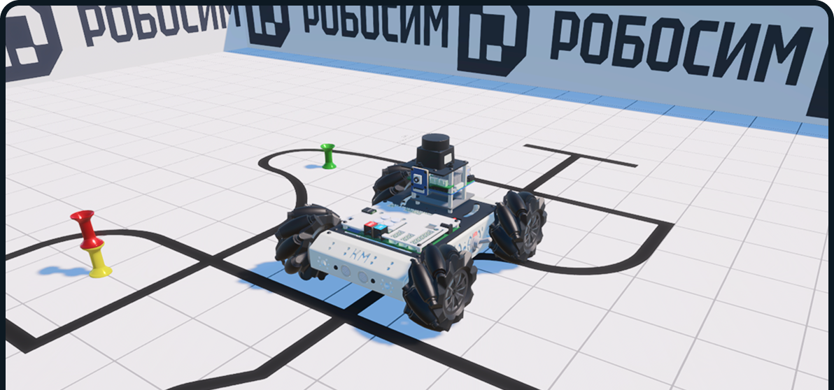 Робосим – это широкий спектр инструментов для работы с роботами, начиная с выбора готовых моделей и заканчивая созданием собственных конфигураций. Вы сможете программировать поведение роботов визуально, используя блоки, либо написать код на популярных языках, таких как Python. Тестируйте созданные программы в симуляциях: мы подготовили карты со средой, имитирующей реальные условия эксплуатации.